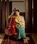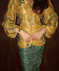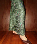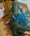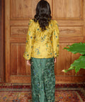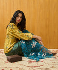 This piece carries a quiet refinement for festive occasions. Its thoughtfully structured silhouette allows the delicate beading and rich colour pairing of gold yellow and emerald green to take centre stage.