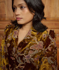 This piece brings a refined presence to festive dressing. Simple in form, this piece allows the depth of the print and fabric to stand out.